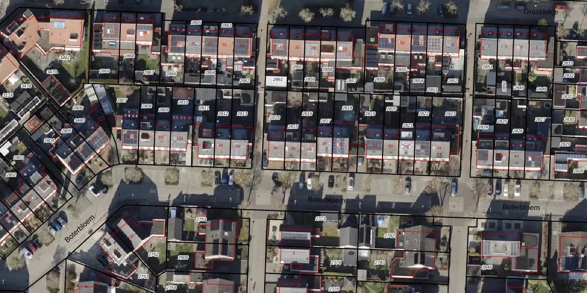 Gebruik de zoekbalk of klik op een perceel voor informatie over de adressen binnen dit perceel.