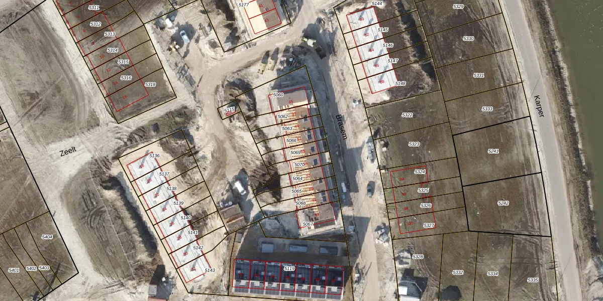 Het perceel waarop Brasem 53 staat heeft een oppervlakte van 92 m². Dit is een klein perceel. De perceeloppervlakte wordt geregistreerd door het Kadaster. Gedetailleerde informatie over de maten van dit perceel kunt u vinden in het rapport Kadastrale kaart met maatvoering van Brasem 53.