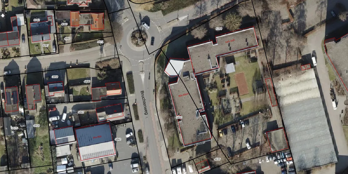 Bruchterweg 80-b-1 is gelegen op kadastraal perceel HDB02A5492. Deze kadastrale aanduiding is uniek en wordt gebruikt door het Kadaster om eigendomsrechten en andere zakelijke rechten vast te leggen. Het perceel maakt onderdeel uit van de kadastrale gemeente Stad-Hardenberg.