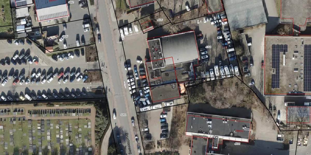 Het perceel waarop Bruchterweg 82-c staat heeft een oppervlakte van 2518 m². Dit is een zeer groot perceel. De perceeloppervlakte wordt geregistreerd door het Kadaster. Gedetailleerde informatie over de maten van dit perceel kunt u vinden in het rapport Kadastrale kaart met maatvoering van Bruchterweg 82-c.