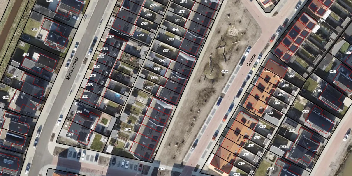 Het perceel waarop Cedule 16 staat heeft een oppervlakte van 149 m². Dit is een middelgroot perceel. De perceeloppervlakte wordt geregistreerd door het Kadaster. Gedetailleerde informatie over de maten van dit perceel kunt u vinden in het rapport Kadastrale kaart met maatvoering van Cedule 16.