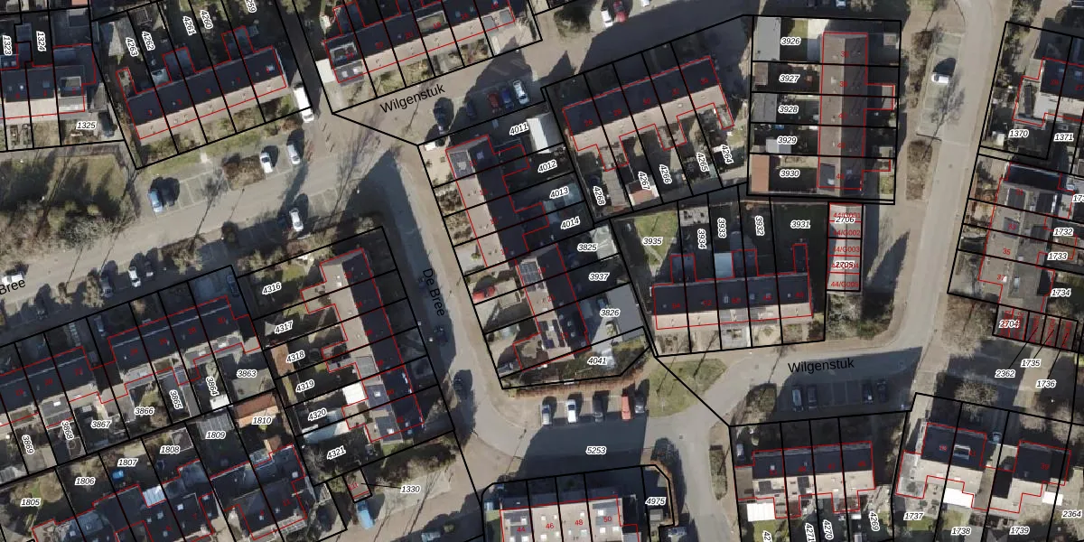 Gebruik de zoekbalk of klik op een perceel voor informatie over de adressen binnen dit perceel.