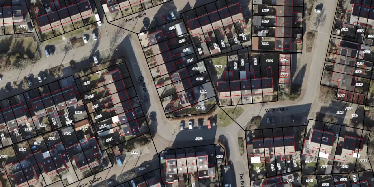 Gebruik de zoekbalk of klik op een perceel voor informatie over de adressen binnen dit perceel.
