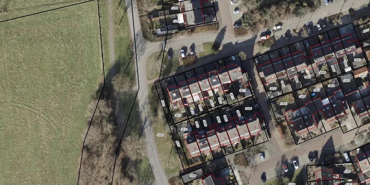 Gebruik de zoekbalk of klik op een perceel voor informatie over de adressen binnen dit perceel.