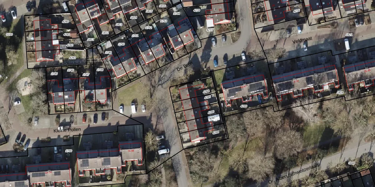 Gebruik de zoekbalk of klik op een perceel voor informatie over de adressen binnen dit perceel.