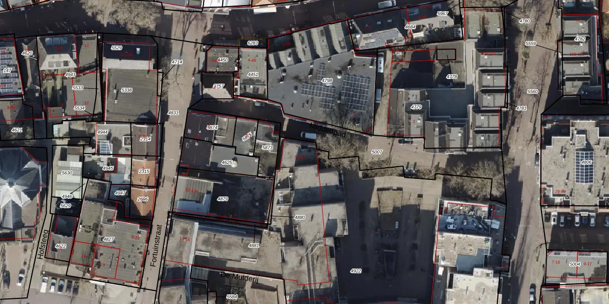 Het perceel waarop De Mulderij 9 staat heeft een oppervlakte van 5909 m². Dit is een zeer groot perceel. De perceeloppervlakte wordt geregistreerd door het Kadaster. Gedetailleerde informatie over de maten van dit perceel kunt u vinden in het rapport Kadastrale kaart met maatvoering van De Mulderij 9.
