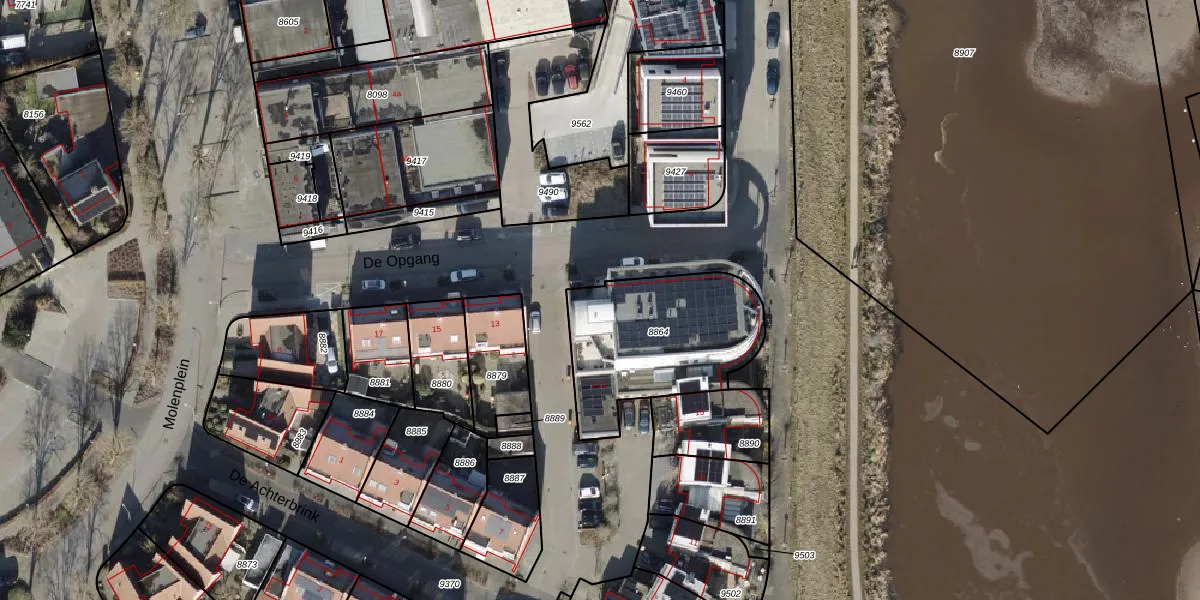 Het perceel waarop De Opgang 9 staat heeft een oppervlakte van 642 m². Dit is een groot perceel. De perceeloppervlakte wordt geregistreerd door het Kadaster. Gedetailleerde informatie over de maten van dit perceel kunt u vinden in het rapport Kadastrale kaart met maatvoering van De Opgang 9.