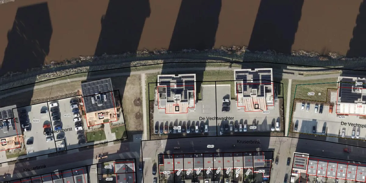 De Vechtwachter 22 is gelegen op kadastraal perceel HDB02A5839. Deze kadastrale aanduiding is uniek en wordt gebruikt door het Kadaster om eigendomsrechten en andere zakelijke rechten vast te leggen. Het perceel maakt onderdeel uit van de kadastrale gemeente Stad-Hardenberg.