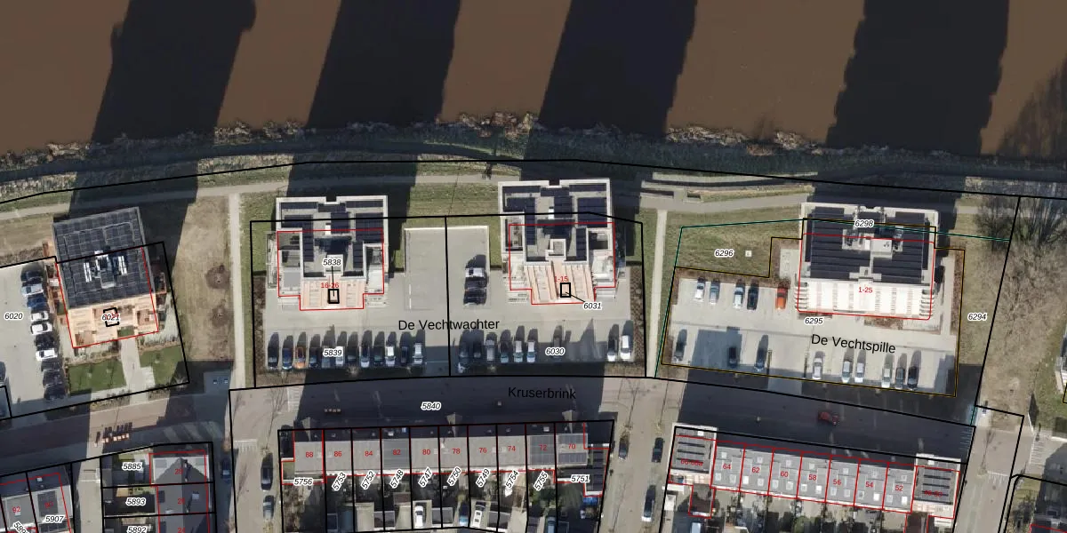 De Vechtwachter 5 is gelegen op kadastraal perceel HDB02A6030. Deze kadastrale aanduiding is uniek en wordt gebruikt door het Kadaster om eigendomsrechten en andere zakelijke rechten vast te leggen. Het perceel maakt onderdeel uit van de kadastrale gemeente Stad-Hardenberg.