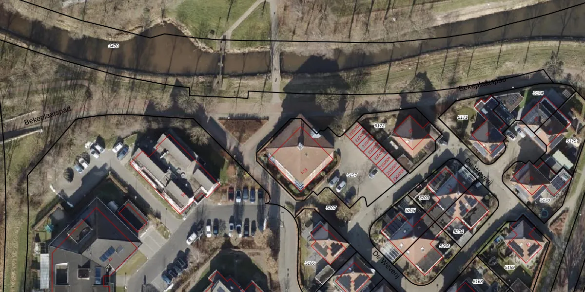Het perceel waarop De Weverij 11 staat heeft een oppervlakte van 979 m². Dit is een groot perceel. De perceeloppervlakte wordt geregistreerd door het Kadaster. Gedetailleerde informatie over de maten van dit perceel kunt u vinden in het rapport Kadastrale kaart met maatvoering van De Weverij 11.