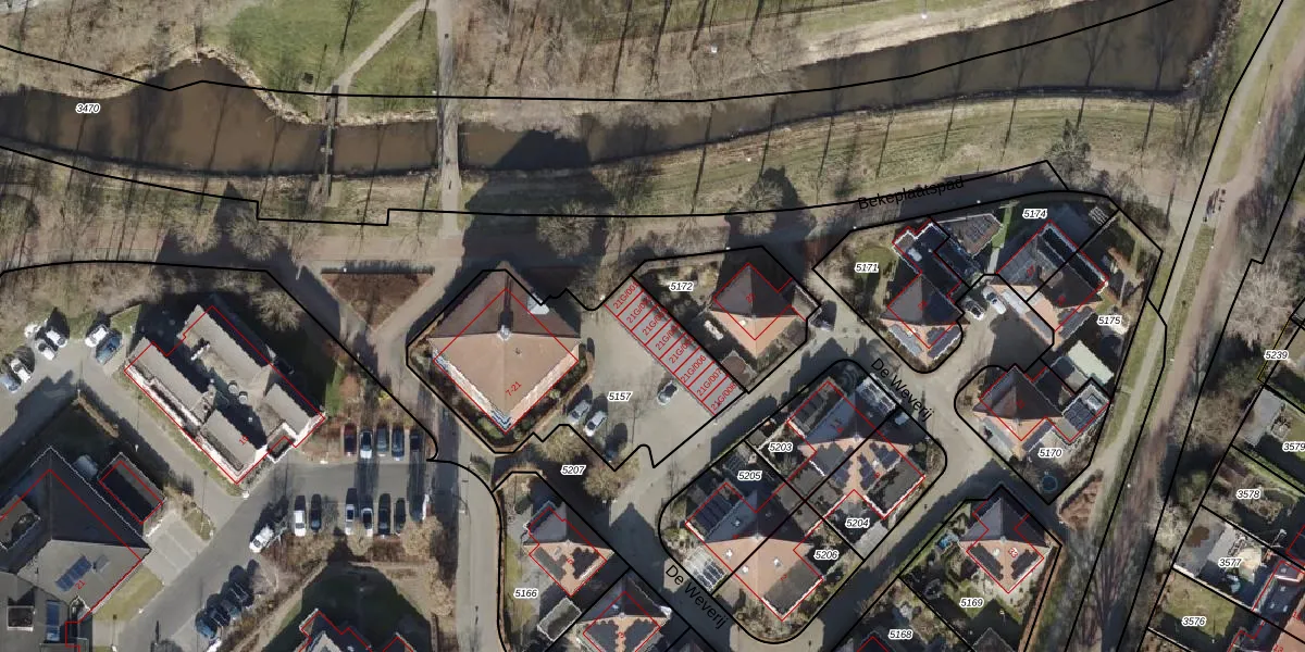 Het perceel waarop De Weverij 21-G-003 staat heeft een oppervlakte van 979 m². Dit is een groot perceel. De perceeloppervlakte wordt geregistreerd door het Kadaster. Gedetailleerde informatie over de maten van dit perceel kunt u vinden in het rapport Kadastrale kaart met maatvoering van De Weverij 21-G-003.