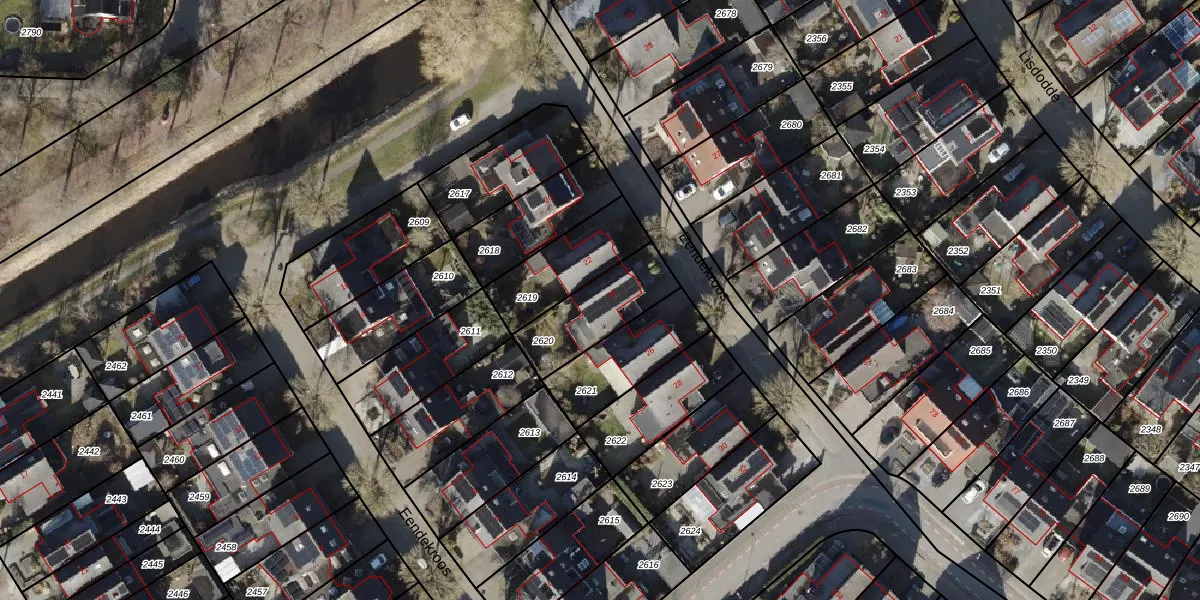 Het perceel waarop Eendekroos 24 staat heeft een oppervlakte van 256 m². Dit is een middelgroot perceel. De perceeloppervlakte wordt geregistreerd door het Kadaster. Gedetailleerde informatie over de maten van dit perceel kunt u vinden in het rapport Kadastrale kaart met maatvoering van Eendekroos 24.