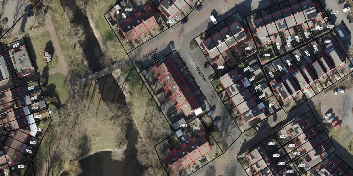 Het perceel waarop Eiberhof 20 staat heeft een oppervlakte van 1778 m². Dit is een zeer groot perceel. De perceeloppervlakte wordt geregistreerd door het Kadaster. Gedetailleerde informatie over de maten van dit perceel kunt u vinden in het rapport Kadastrale kaart met maatvoering van Eiberhof 20.