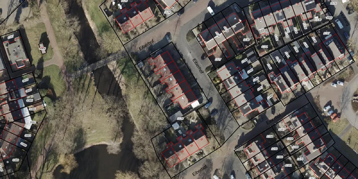 Het perceel waarop Eiberhof 22 staat heeft een oppervlakte van 1778 m². Dit is een zeer groot perceel. De perceeloppervlakte wordt geregistreerd door het Kadaster. Gedetailleerde informatie over de maten van dit perceel kunt u vinden in het rapport Kadastrale kaart met maatvoering van Eiberhof 22.