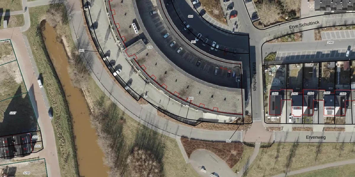 Het perceel waarop Ervenweg 58 staat heeft een oppervlakte van 4363 m². Dit is een zeer groot perceel. De perceeloppervlakte wordt geregistreerd door het Kadaster. Gedetailleerde informatie over de maten van dit perceel kunt u vinden in het rapport Kadastrale kaart met maatvoering van Ervenweg 58.