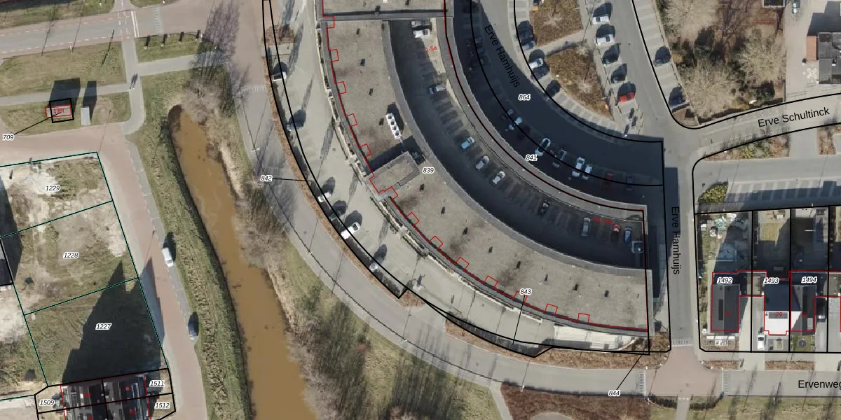 Het perceel waarop Ervenweg 64 staat heeft een oppervlakte van 4363 m². Dit is een zeer groot perceel. De perceeloppervlakte wordt geregistreerd door het Kadaster. Gedetailleerde informatie over de maten van dit perceel kunt u vinden in het rapport Kadastrale kaart met maatvoering van Ervenweg 64.