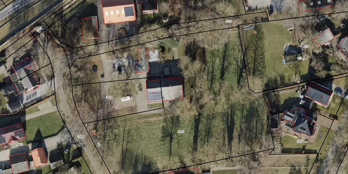 Het perceel waarop Esdwarsweg 2-i staat heeft een oppervlakte van 6430 m². Dit is een zeer groot perceel. De perceeloppervlakte wordt geregistreerd door het Kadaster. Gedetailleerde informatie over de maten van dit perceel kunt u vinden in het rapport Kadastrale kaart met maatvoering van Esdwarsweg 2-i.