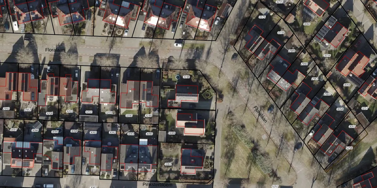 Gebruik de zoekbalk of klik op een perceel voor informatie over de adressen binnen dit perceel.