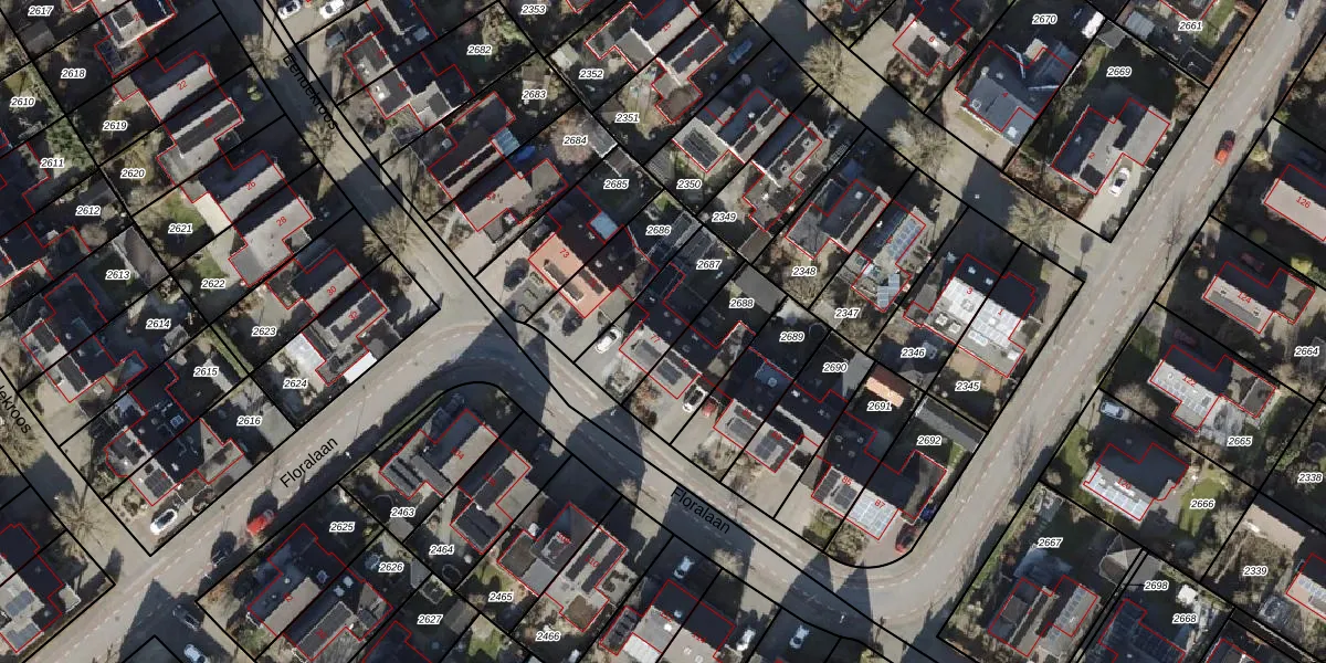 Het perceel waarop Floralaan 77 staat heeft een oppervlakte van 257 m². Dit is een middelgroot perceel. De perceeloppervlakte wordt geregistreerd door het Kadaster. Gedetailleerde informatie over de maten van dit perceel kunt u vinden in het rapport Kadastrale kaart met maatvoering van Floralaan 77.