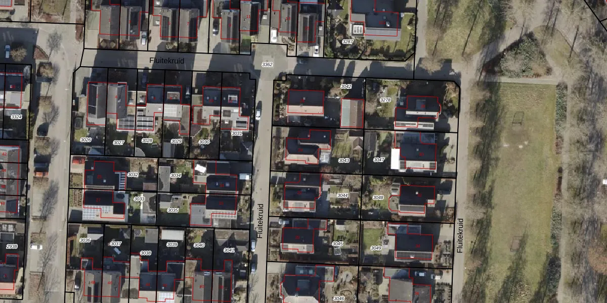 Het perceel waarop Fluitekruid 24 staat heeft een oppervlakte van 455 m². Dit is een groot perceel. De perceeloppervlakte wordt geregistreerd door het Kadaster. Gedetailleerde informatie over de maten van dit perceel kunt u vinden in het rapport Kadastrale kaart met maatvoering van Fluitekruid 24.