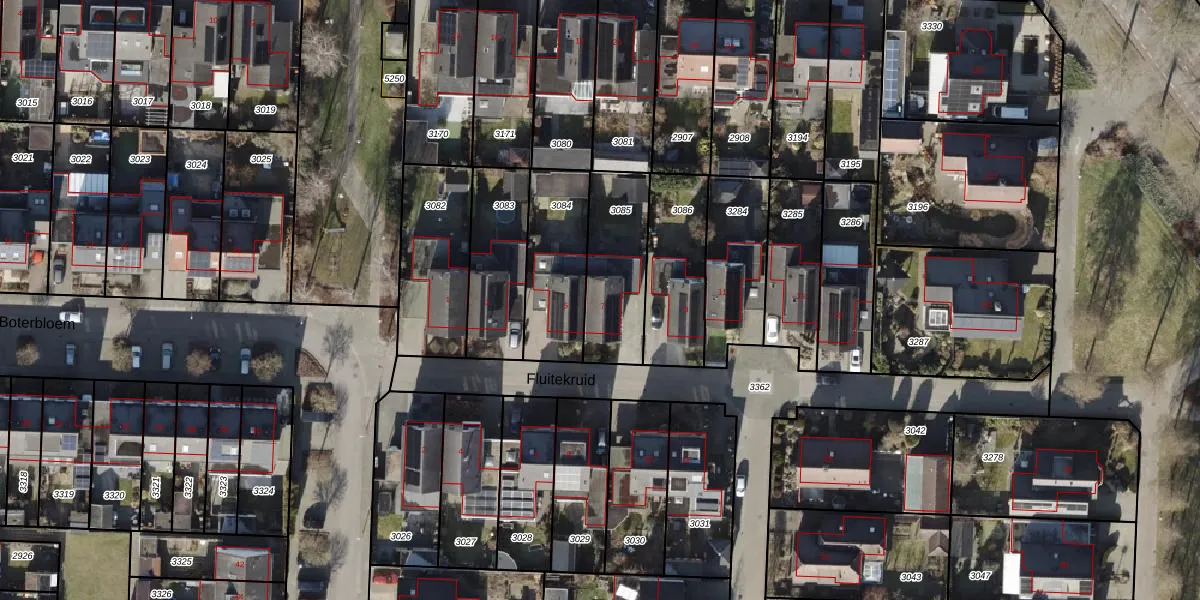 Het perceel waarop Fluitekruid 7 staat heeft een oppervlakte van 320 m². Dit is een groot perceel. De perceeloppervlakte wordt geregistreerd door het Kadaster. Gedetailleerde informatie over de maten van dit perceel kunt u vinden in het rapport Kadastrale kaart met maatvoering van Fluitekruid 7.