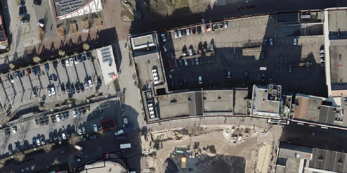 Het perceel waarop Gedempte Haven 19 staat heeft een oppervlakte van 7163 m². Dit is een zeer groot perceel. De perceeloppervlakte wordt geregistreerd door het Kadaster. Gedetailleerde informatie over de maten van dit perceel kunt u vinden in het rapport Kadastrale kaart met maatvoering van Gedempte Haven 19.