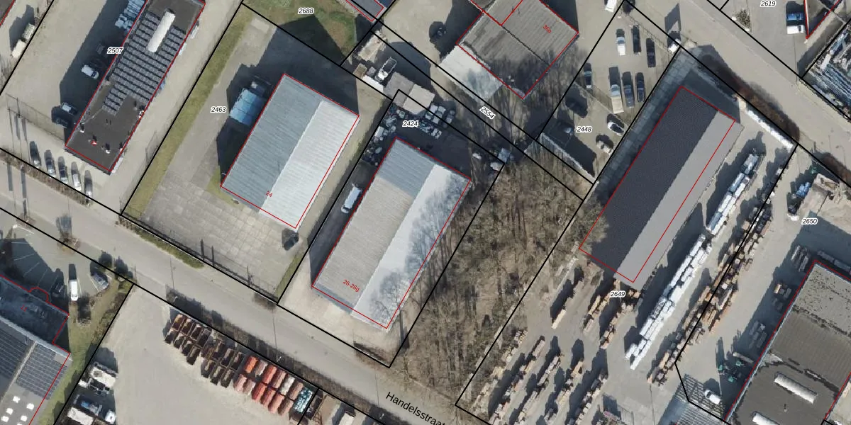 Het perceel waarop Handelsstraat 26-g staat heeft een oppervlakte van 1715 m². Dit is een zeer groot perceel. De perceeloppervlakte wordt geregistreerd door het Kadaster. Gedetailleerde informatie over de maten van dit perceel kunt u vinden in het rapport Kadastrale kaart met maatvoering van Handelsstraat 26-g.