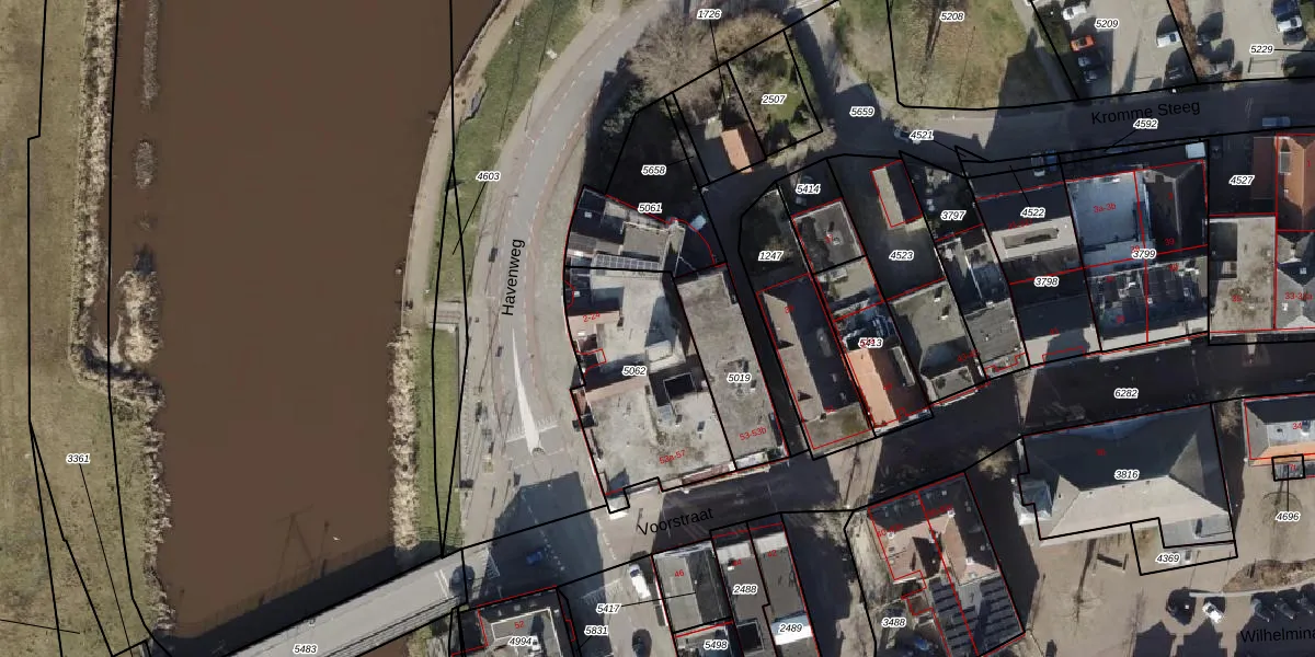 Het perceel waarop Havenweg 12 staat heeft een oppervlakte van 647 m². Dit is een groot perceel. De perceeloppervlakte wordt geregistreerd door het Kadaster. Gedetailleerde informatie over de maten van dit perceel kunt u vinden in het rapport Kadastrale kaart met maatvoering van Havenweg 12.