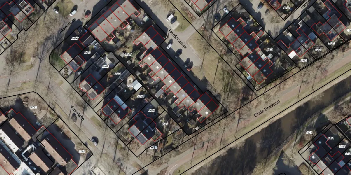 Het perceel waarop Herderstasje 14 staat heeft een oppervlakte van 2365 m². Dit is een zeer groot perceel. De perceeloppervlakte wordt geregistreerd door het Kadaster. Gedetailleerde informatie over de maten van dit perceel kunt u vinden in het rapport Kadastrale kaart met maatvoering van Herderstasje 14.