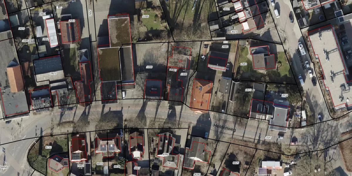 Het perceel waarop Hessenweg 13 staat heeft een oppervlakte van 527 m². Dit is een groot perceel. De perceeloppervlakte wordt geregistreerd door het Kadaster. Gedetailleerde informatie over de maten van dit perceel kunt u vinden in het rapport Kadastrale kaart met maatvoering van Hessenweg 13.