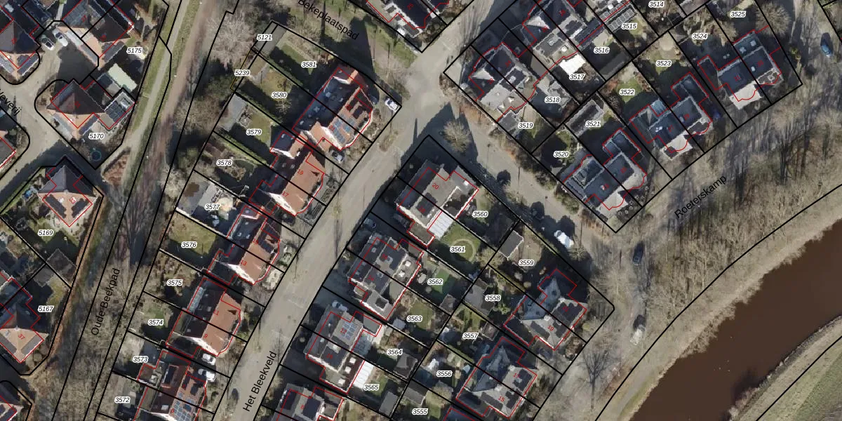 Gebruik de zoekbalk of klik op een perceel voor informatie over de adressen binnen dit perceel.