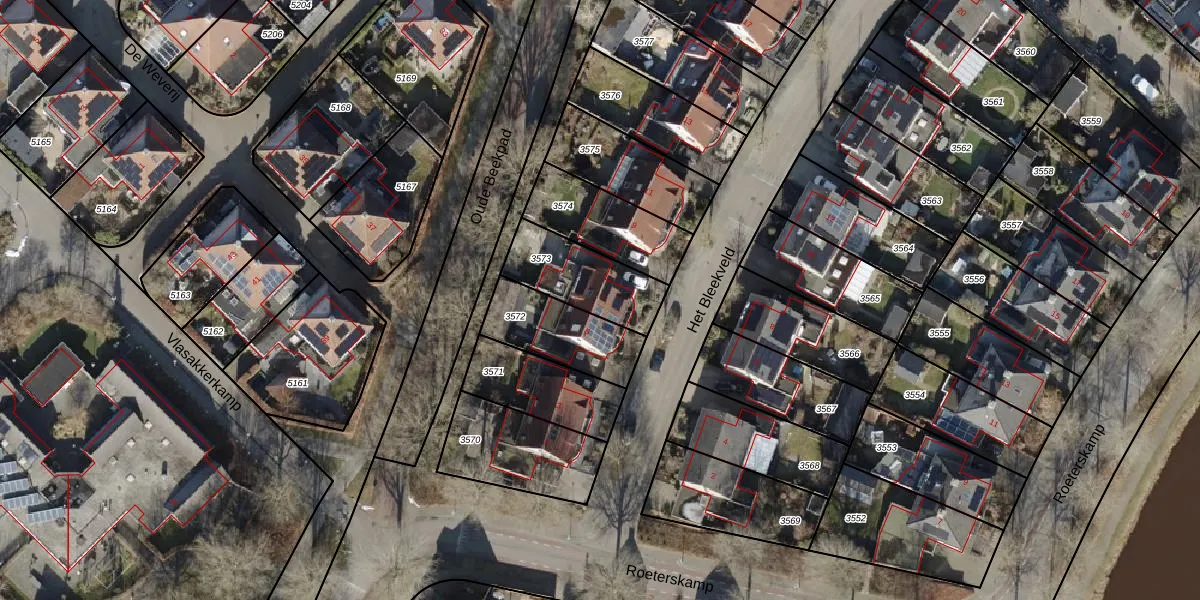 Gebruik de zoekbalk of klik op een perceel voor informatie over de adressen binnen dit perceel.