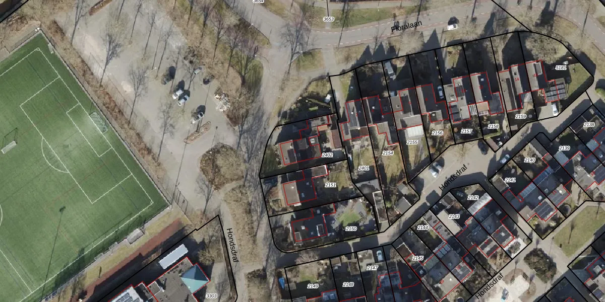 Het perceel waarop Hondsdraf 1 staat heeft een oppervlakte van 407 m². Dit is een groot perceel. De perceeloppervlakte wordt geregistreerd door het Kadaster. Gedetailleerde informatie over de maten van dit perceel kunt u vinden in het rapport Kadastrale kaart met maatvoering van Hondsdraf 1.