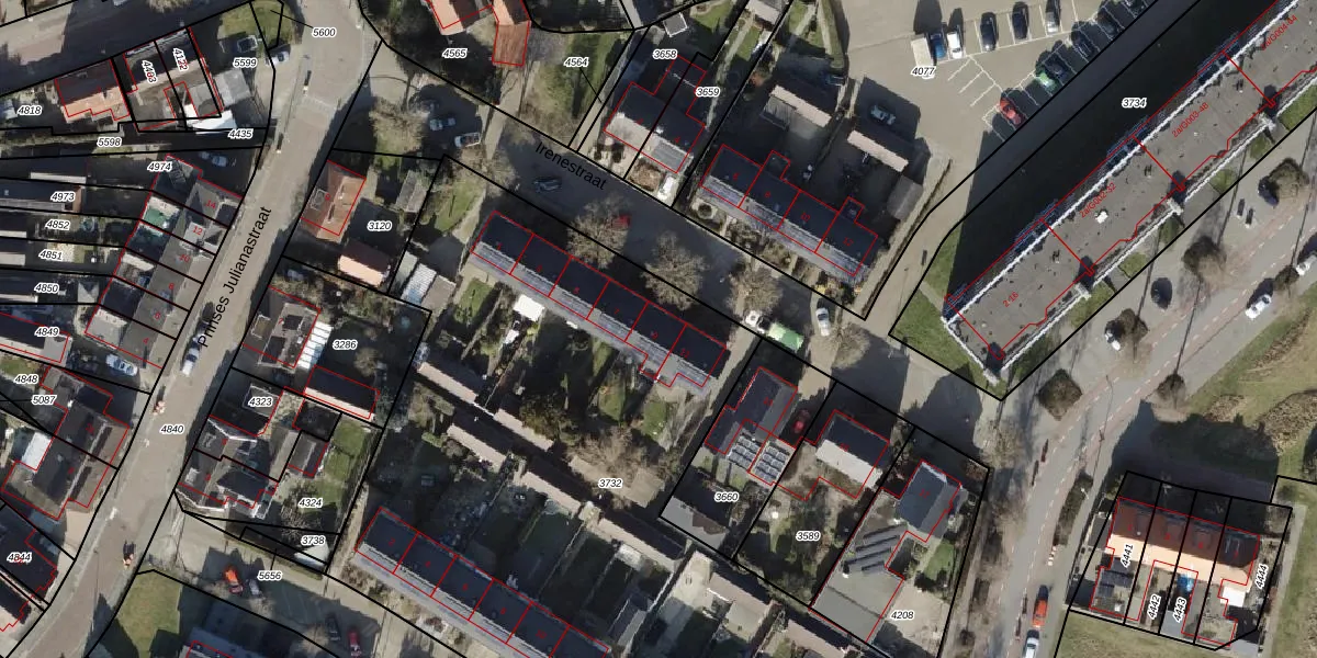 Het perceel waarop Irenestraat 9 staat heeft een oppervlakte van 4815 m². Dit is een zeer groot perceel. De perceeloppervlakte wordt geregistreerd door het Kadaster. Gedetailleerde informatie over de maten van dit perceel kunt u vinden in het rapport Kadastrale kaart met maatvoering van Irenestraat 9.