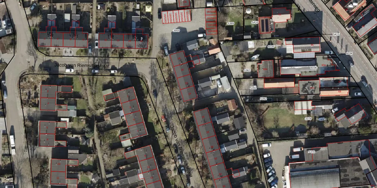 Het perceel waarop Jacob van Riemsdijkstraat 24 staat heeft een oppervlakte van 1,2 ha. Dit is een zeer groot perceel. De perceeloppervlakte wordt geregistreerd door het Kadaster. Gedetailleerde informatie over de maten van dit perceel kunt u vinden in het rapport Kadastrale kaart met maatvoering van Jacob van Riemsdijkstraat 24.