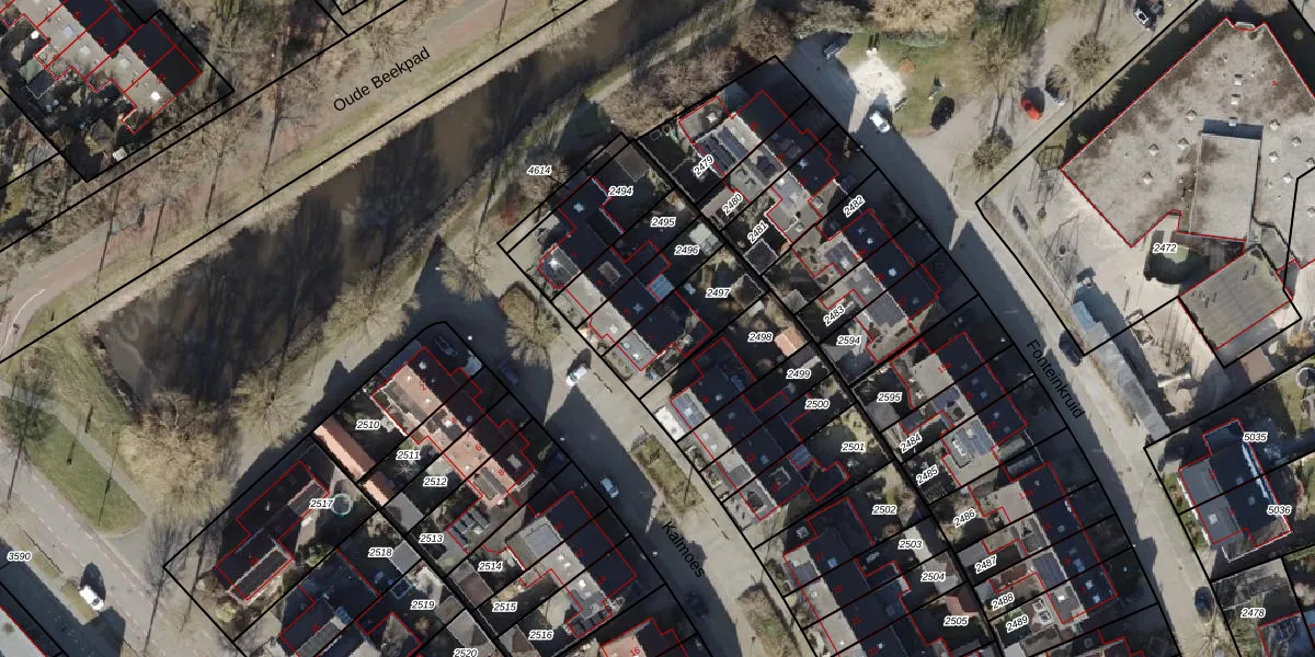 Gebruik de zoekbalk of klik op een perceel voor informatie over de adressen binnen dit perceel.