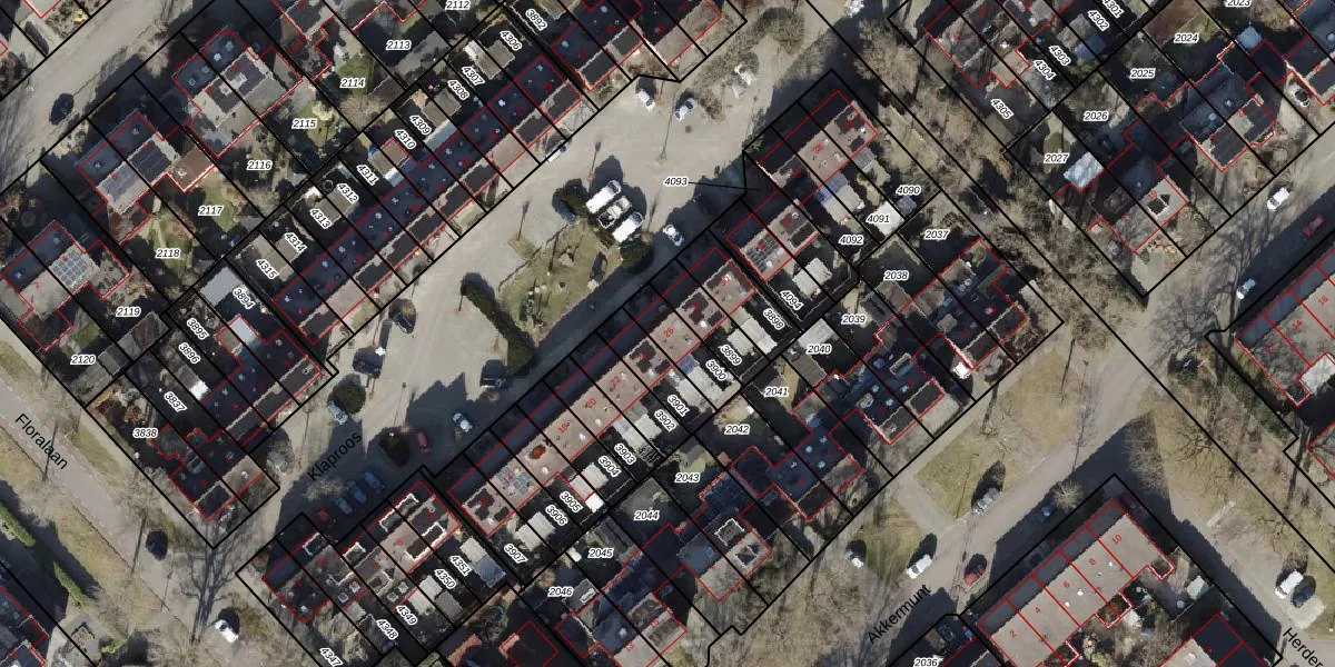 Gebruik de zoekbalk of klik op een perceel voor informatie over de adressen binnen dit perceel.