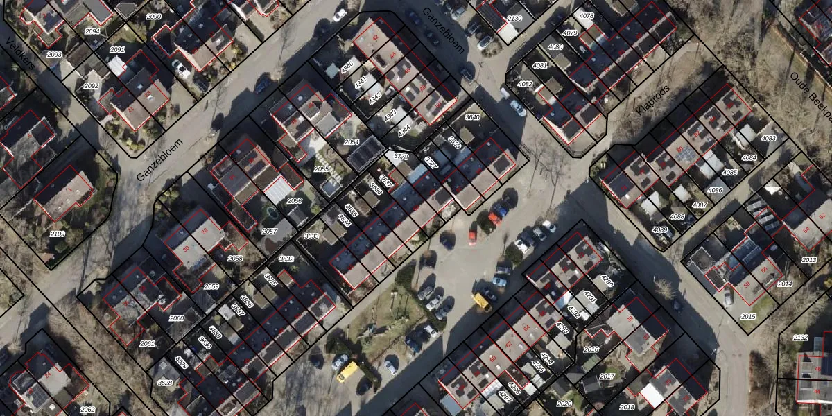 Gebruik de zoekbalk of klik op een perceel voor informatie over de adressen binnen dit perceel.