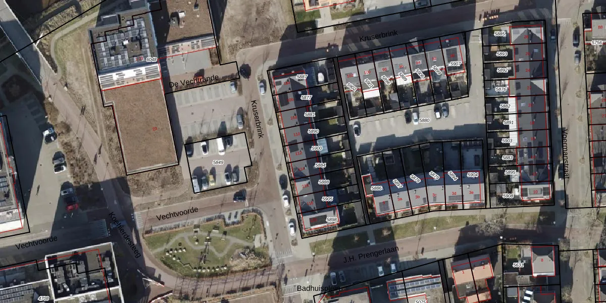 Kruserbrink 112 is gelegen op kadastraal perceel HDB02A5900. Deze kadastrale aanduiding is uniek en wordt gebruikt door het Kadaster om eigendomsrechten en andere zakelijke rechten vast te leggen. Het perceel maakt onderdeel uit van de kadastrale gemeente Stad-Hardenberg.