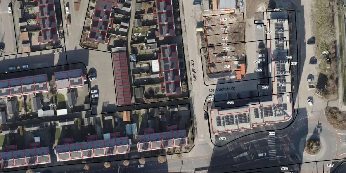 Het perceel waarop Kruserbrink 2 staat heeft een oppervlakte van 3540 m². Dit is een zeer groot perceel. De perceeloppervlakte wordt geregistreerd door het Kadaster. Gedetailleerde informatie over de maten van dit perceel kunt u vinden in het rapport Kadastrale kaart met maatvoering van Kruserbrink 2.