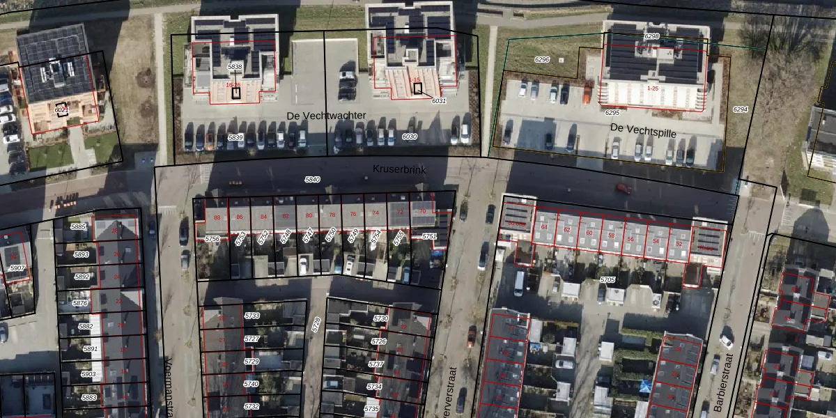 Gebruik de zoekbalk of klik op een perceel voor informatie over de adressen binnen dit perceel.
