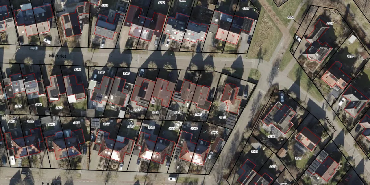 Gebruik de zoekbalk of klik op een perceel voor informatie over de adressen binnen dit perceel.