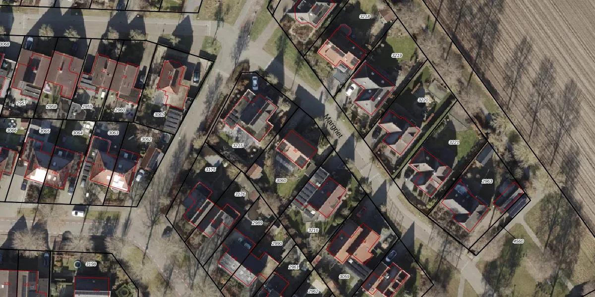 Het perceel waarop Margriet 30 staat heeft een oppervlakte van 542 m². Dit is een groot perceel. De perceeloppervlakte wordt geregistreerd door het Kadaster. Gedetailleerde informatie over de maten van dit perceel kunt u vinden in het rapport Kadastrale kaart met maatvoering van Margriet 30.