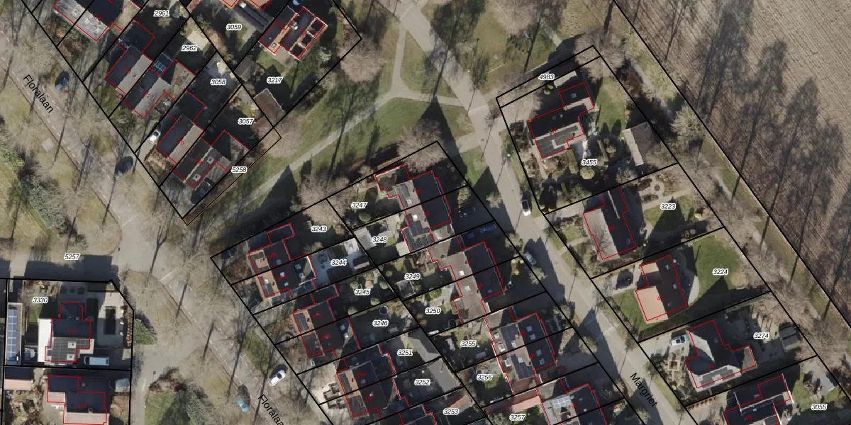 Gebruik de zoekbalk of klik op een perceel voor informatie over de adressen binnen dit perceel.