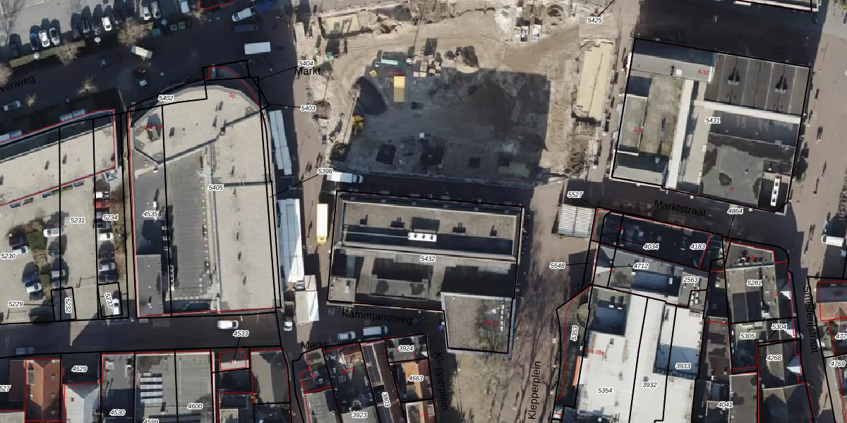 Het perceel waarop Markt 25 staat heeft een oppervlakte van 1273 m². Dit is een zeer groot perceel. De perceeloppervlakte wordt geregistreerd door het Kadaster. Gedetailleerde informatie over de maten van dit perceel kunt u vinden in het rapport Kadastrale kaart met maatvoering van Markt 25.