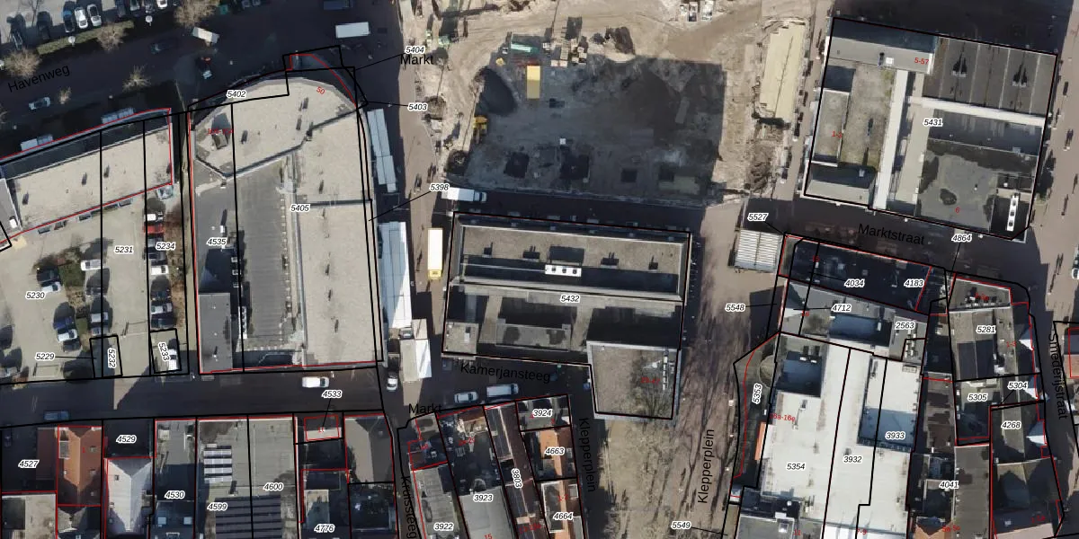 Het perceel waarop Markt 35 staat heeft een oppervlakte van 1273 m². Dit is een zeer groot perceel. De perceeloppervlakte wordt geregistreerd door het Kadaster. Gedetailleerde informatie over de maten van dit perceel kunt u vinden in het rapport Kadastrale kaart met maatvoering van Markt 35.