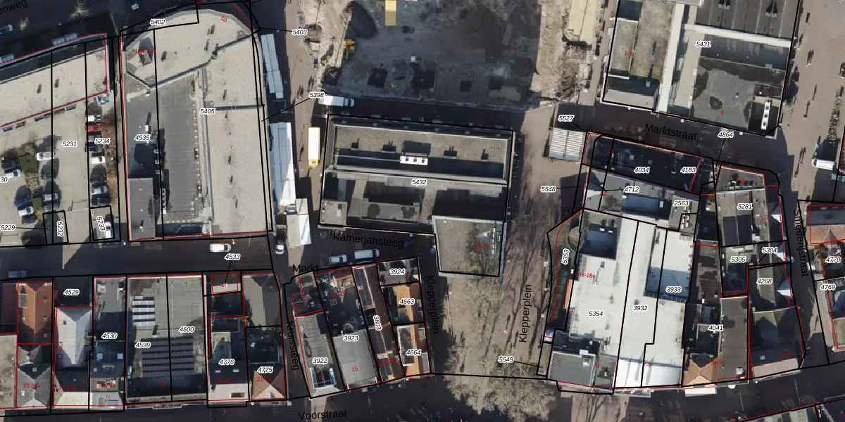 Het perceel waarop Markt 43 staat heeft een oppervlakte van 1273 m². Dit is een zeer groot perceel. De perceeloppervlakte wordt geregistreerd door het Kadaster. Gedetailleerde informatie over de maten van dit perceel kunt u vinden in het rapport Kadastrale kaart met maatvoering van Markt 43.