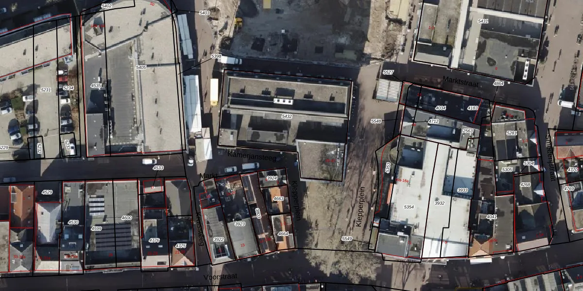 Het perceel waarop Markt 44 staat heeft een oppervlakte van 1273 m². Dit is een zeer groot perceel. De perceeloppervlakte wordt geregistreerd door het Kadaster. Gedetailleerde informatie over de maten van dit perceel kunt u vinden in het rapport Kadastrale kaart met maatvoering van Markt 44.