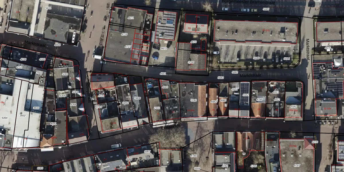 Het perceel waarop Marktstraat 7 staat heeft een oppervlakte van 250 m². Dit is een middelgroot perceel. De perceeloppervlakte wordt geregistreerd door het Kadaster. Gedetailleerde informatie over de maten van dit perceel kunt u vinden in het rapport Kadastrale kaart met maatvoering van Marktstraat 7.