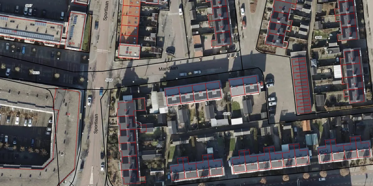 Het perceel waarop Marslaan 41 staat heeft een oppervlakte van 6455 m². Dit is een zeer groot perceel. De perceeloppervlakte wordt geregistreerd door het Kadaster. Gedetailleerde informatie over de maten van dit perceel kunt u vinden in het rapport Kadastrale kaart met maatvoering van Marslaan 41.
